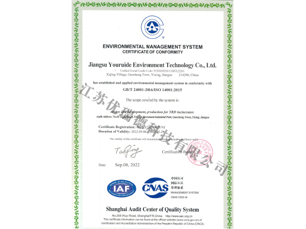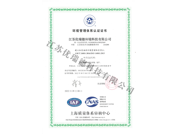 環(huán)境管理體系認(rèn)證證書-中文