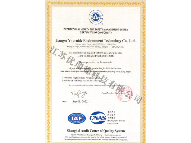 職業(yè)健康安全管理體系認(rèn)證證書-中文